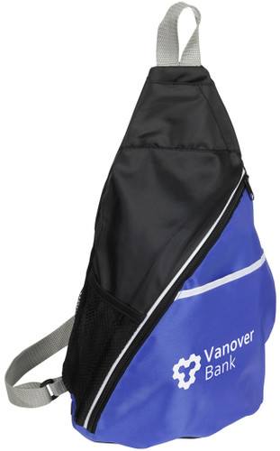 Loading... Please wait...College sling pack. Large cross pocket with zippered closure. Handy front pocket. Mesh pocket. Adjustable shoulder strap. Hang loop. Red, blue, gray & green. Product size 16 1/2" h x 12" w x 5" deep. Imprint area 5 1/2" x 5 1/2".