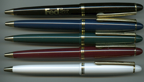 Loading... Please wait...Executive style retractable click pen. 5 great colors. Brass trim. Quality look at an affordable price. Medium point black ink refill. Imprint area 1 1/2" x 1/2".