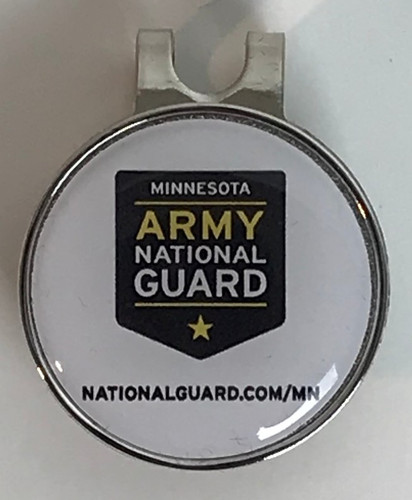 Loading... Please wait...Hat clip golf ball marker. One inch in diameter ARNG full color shield logo ball marker removes easily to be set onto the green. 7 great color options: Red, white, blue, black, green, silver & brass.