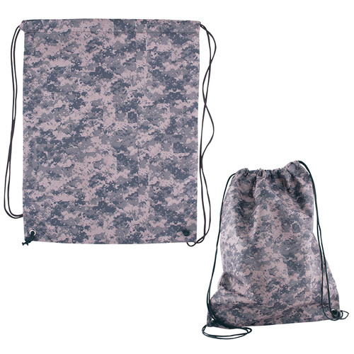 Loading... Please wait...Non woven digital camo cinch sack. Product size 17 1/2"h x 14 1/2"w. Imprint area 8" x 8".