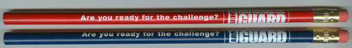 Loading... Please wait...19 SOLID BARREL COLORS AVAILABLE. Solid red & solid blue #2 lead pencils with a white imprint makes for a patriotic presentation. State personalized Army National Guard horizontal logo & call to action. Quality construction. Great for air shows, state fairs & college events. Large imprint area 4" x 3/4".